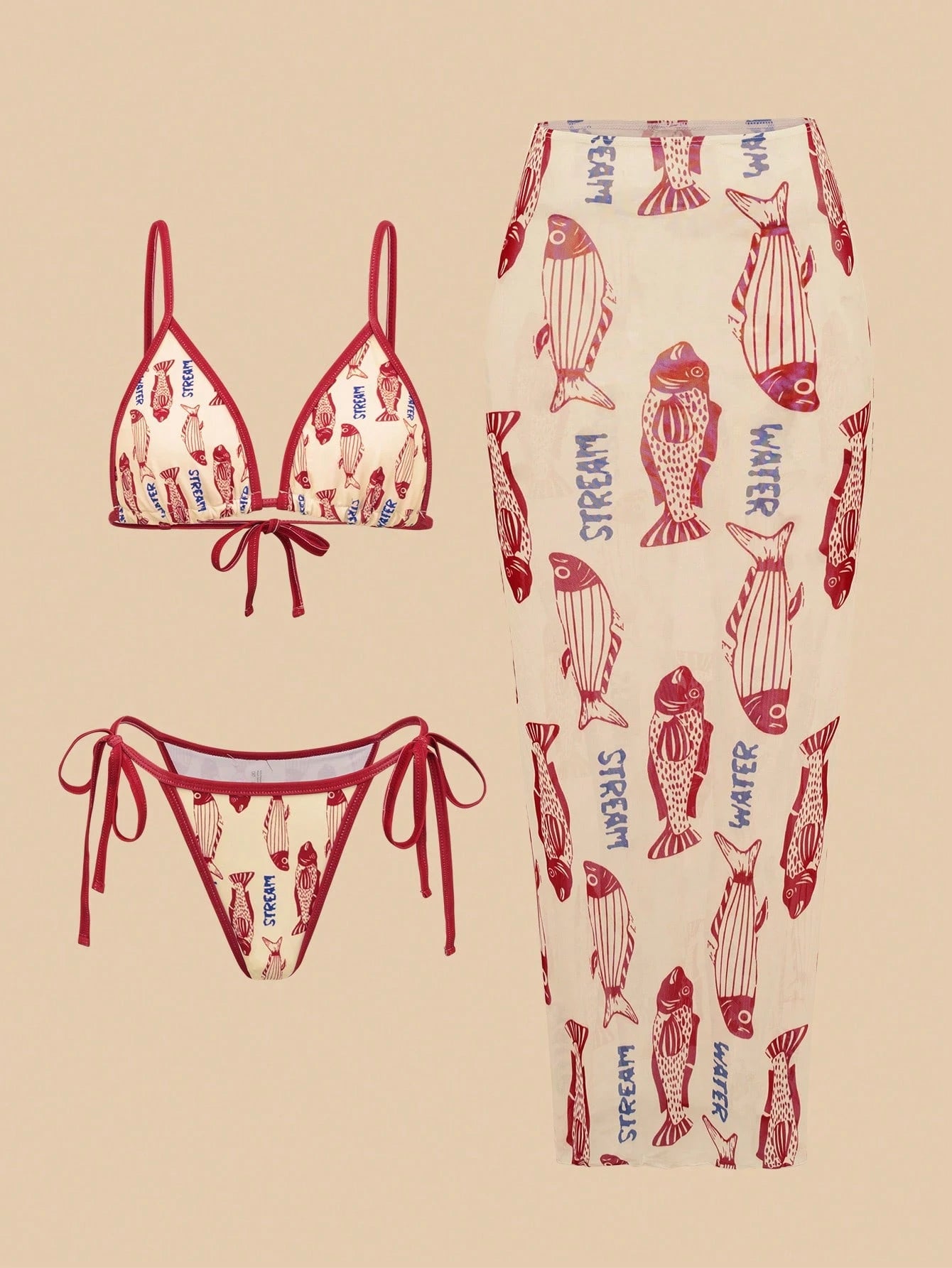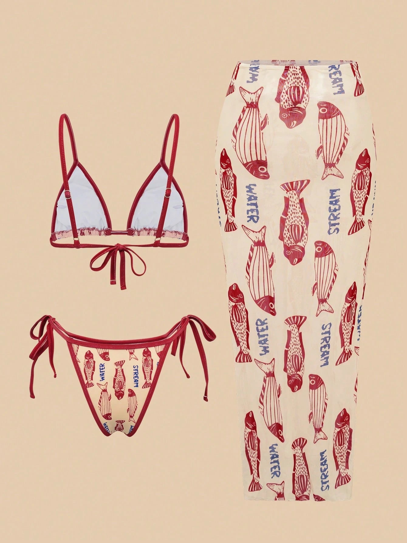 3 piezas Top con tirantes ajustables con lazo lateral y falda larga