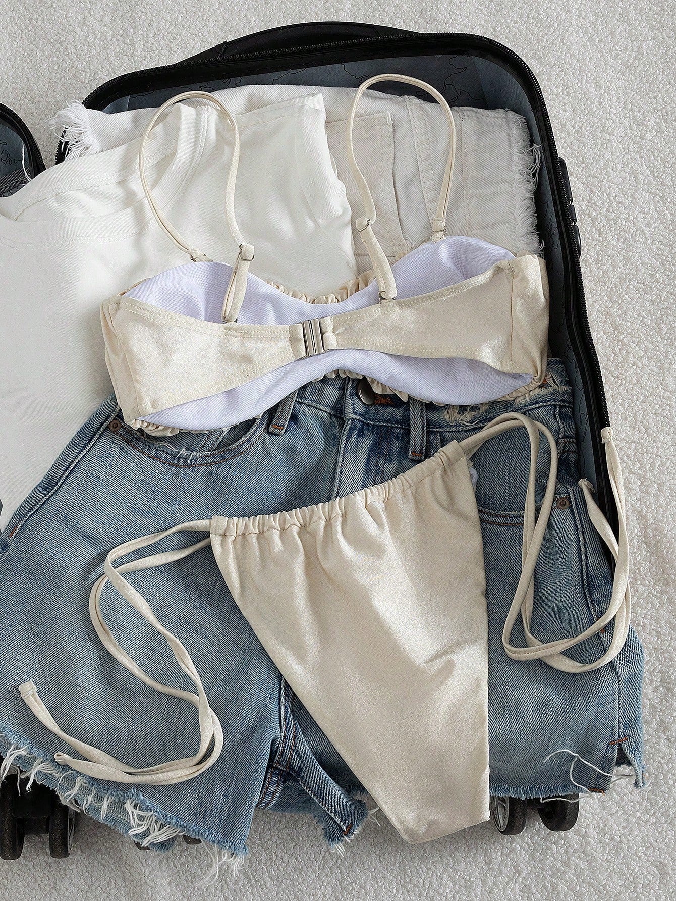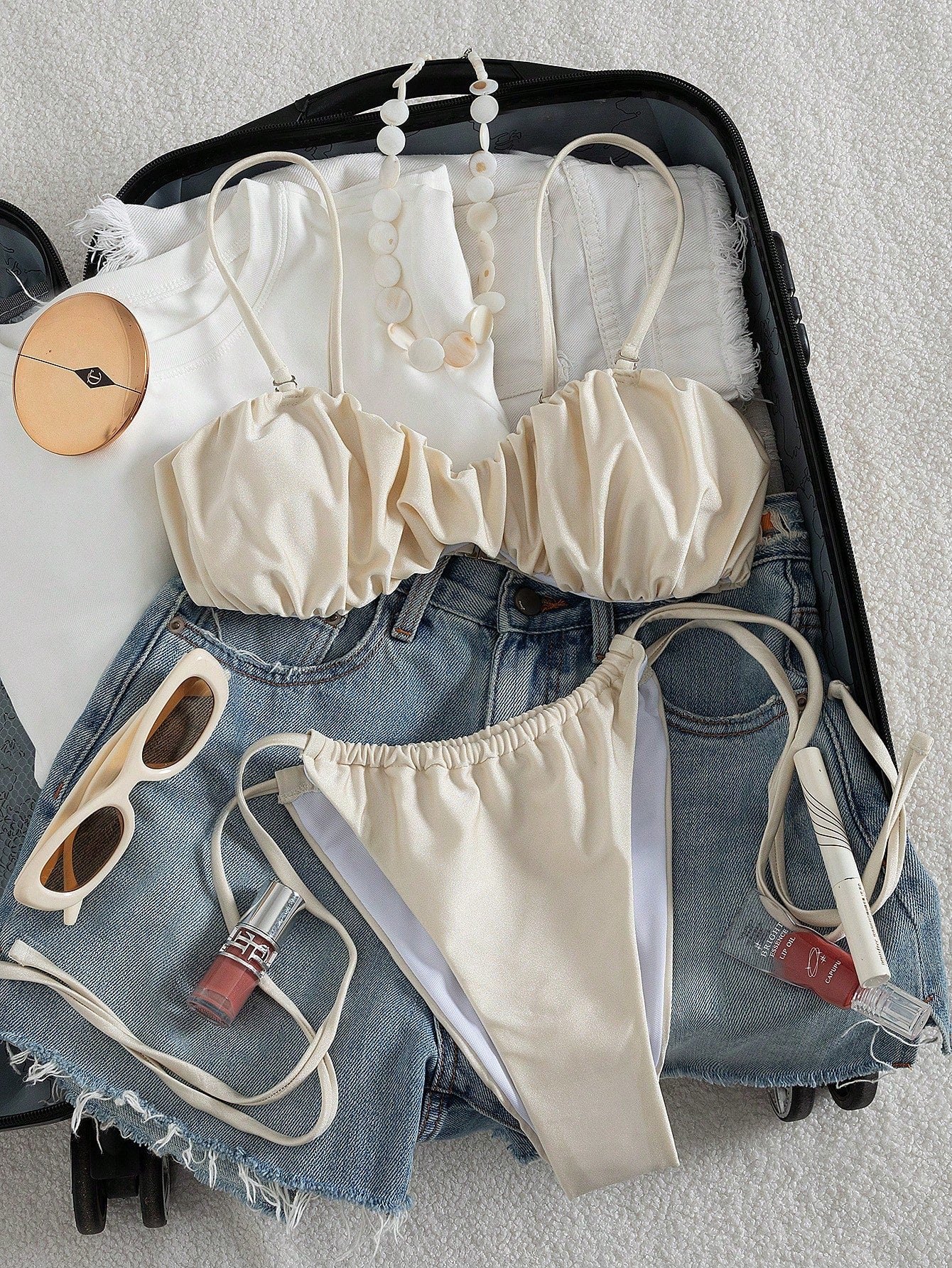 Conjunto de bikini sexy de un solo color con diseño fruncido y copa de soporte