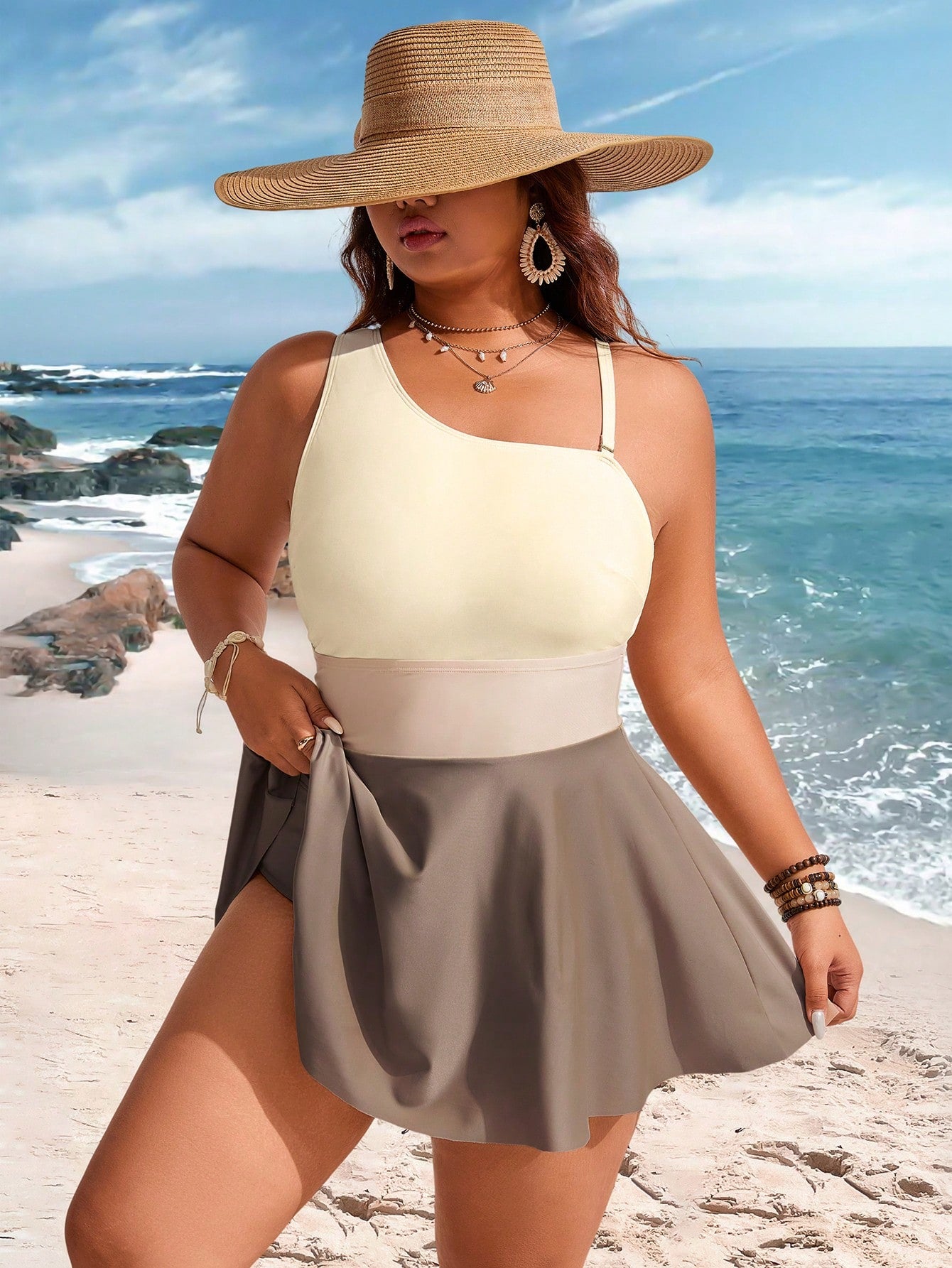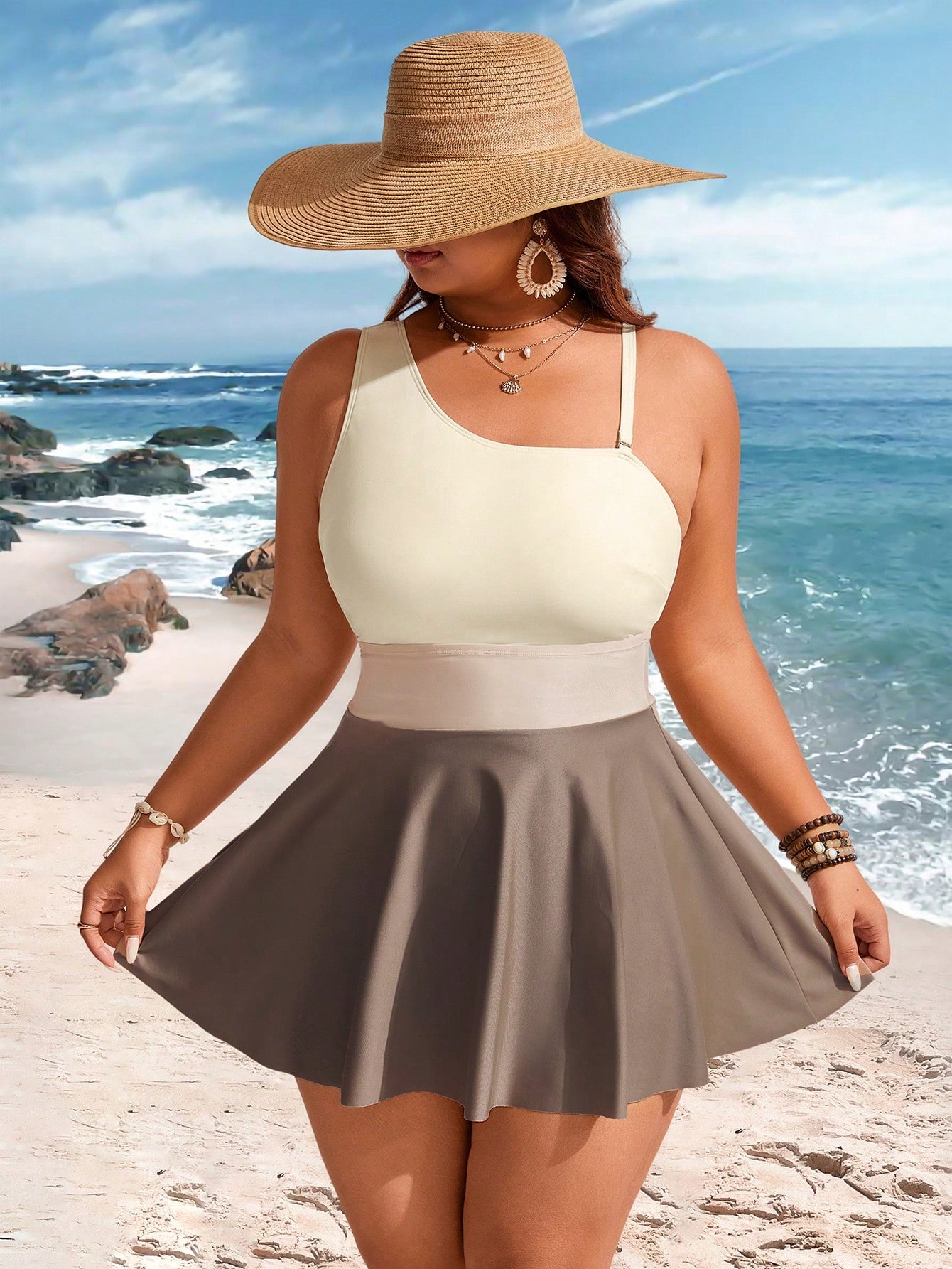 Conjunto de 2 piezas con un hombro con pliegues y falda