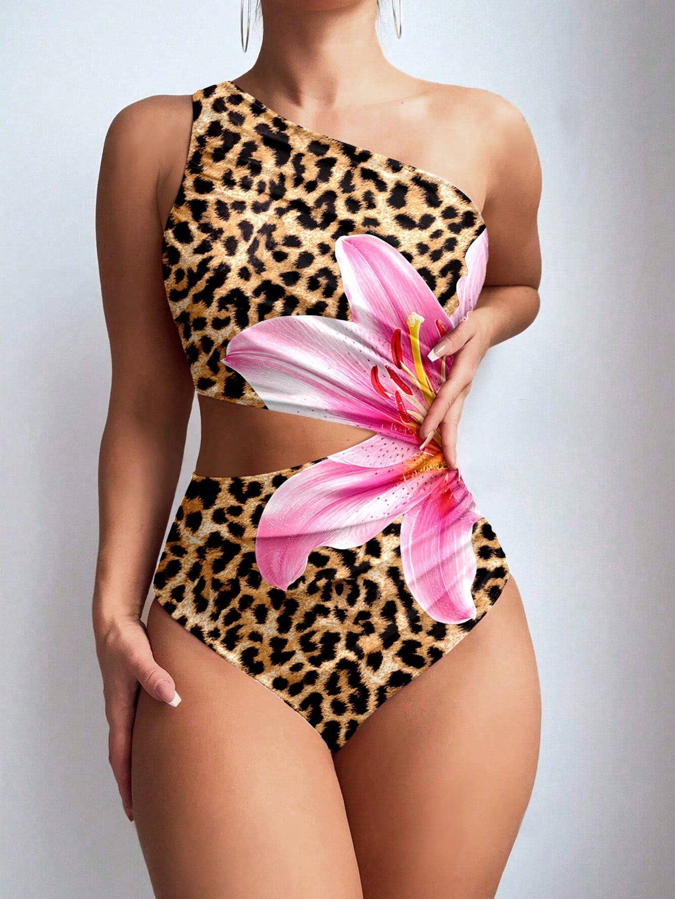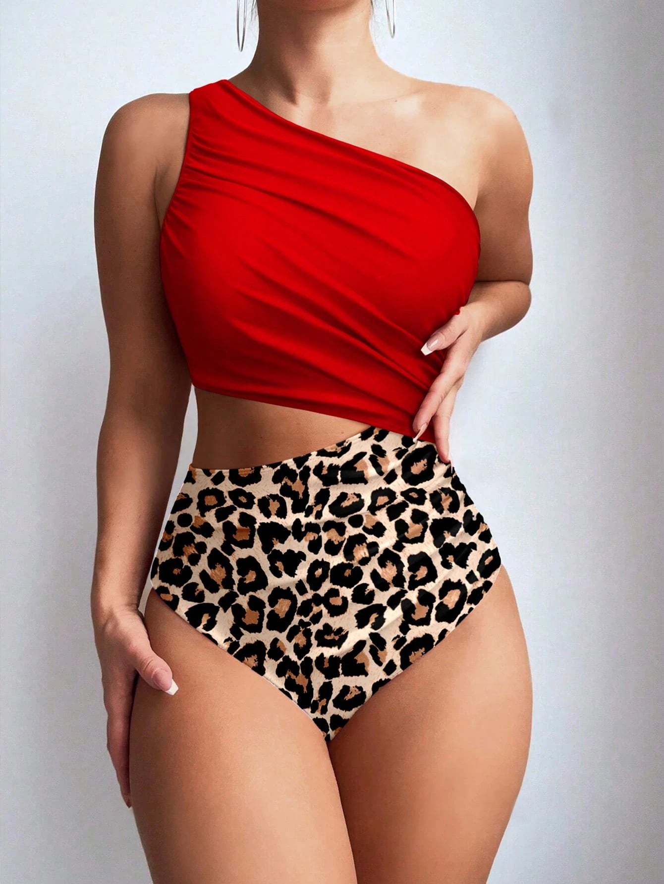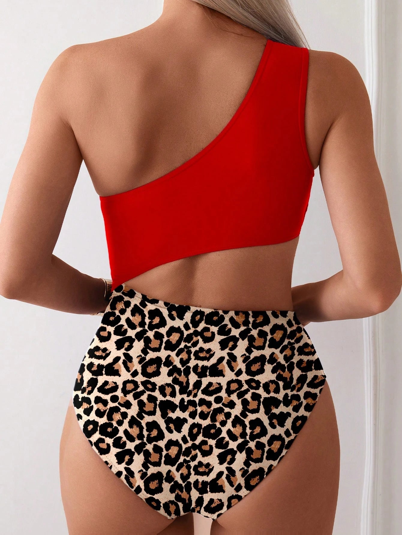 Traje de baño de una pieza para mujer, con un hombro asimétrico, estampado de leopardo en unicolor, sin mangas, cómodo y casual para la playa y vacaciones